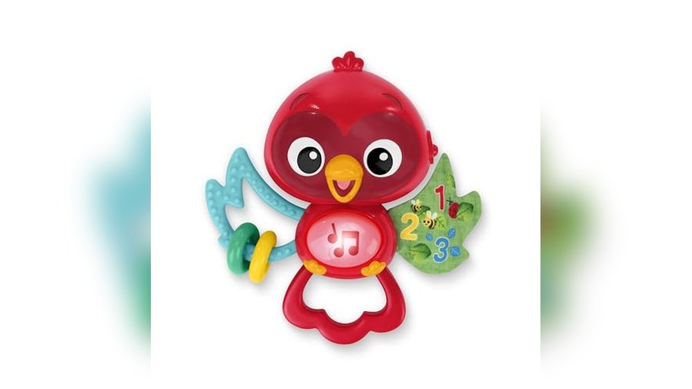- Multi-functional as a musical rattle, light-up teether, and sensory chew toy