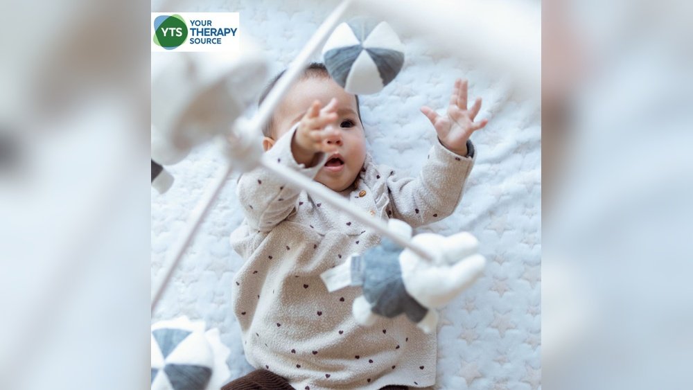 By a few weeks old, babies begin to watch objects closely. They follow moving items with their eyes. Sometimes, they try to reach or swipe at toys. These actions show early coordination between eyes and hands.