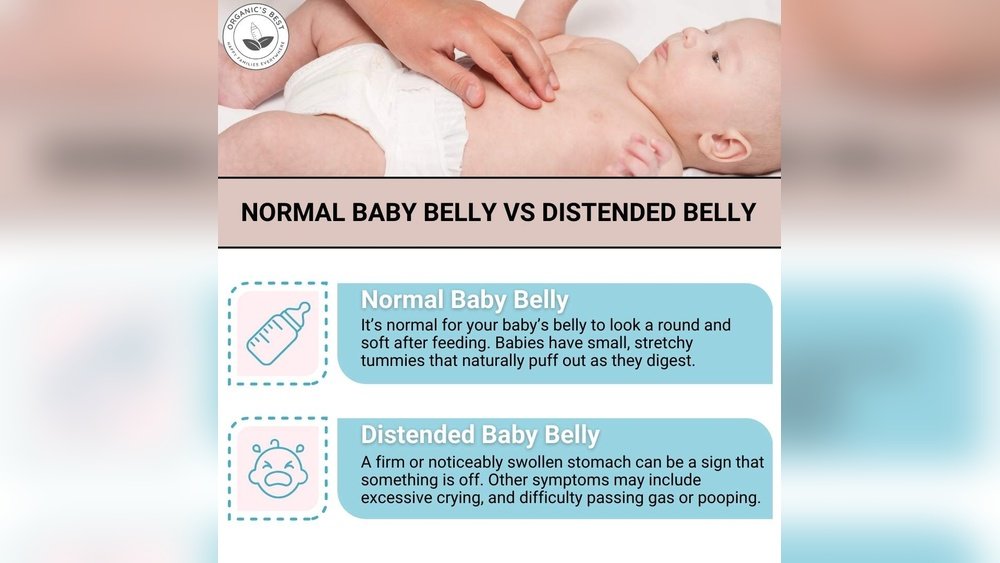 The baby’s belly may look swollen or bigger than usual. It might feel tight or hard when gently touched. This swelling often appears after feeding. It can be a clear sign of bloating in newborns.
