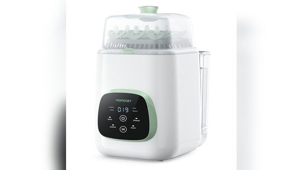 It is easy to use and doesn’t need to be hooked up to a sink, which adds flexibility to where you can place it. While the drying process leaves some moisture in concave areas, bottles remain sterile for up to 72 hours. The size and weight mean it’s not something you’ll move often, but its performance can save time and effort in the busy nighttime routine.